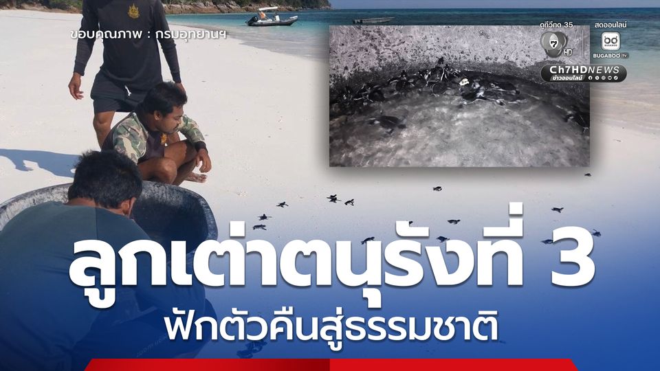 วันนี้ (25 มี.ค. 69) นายศิริวัฒน์ สืบสาย หัวหน้าอุทยานแห่งชาติหมู่เกาะสิมิลัน เปิดเผยรายงานสถานการณ์ด้านทรัพยากรธรรมชาติที่น่ายินดี โดยระบุว่า เจ้าหน้าที่หน่วยพิทักษ์อุทยานแห่งชาติที่ สล.3 (เกาะตาชัย) ได้ติดตามผลการฟักไข่ของแม่เต่าตนุรังที่ 3 ของปี ซึ่งขึ้นมาวางไข่บริเวณชายหาดเกาะตาชัย เมื่อวันที่ (23 ม.ค. 68) ที่ผ่านมา