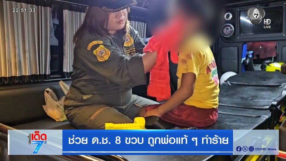 ประเด็นเด็ด 7 สี - เด็กชายอายุ 8 ขวบ ถูกพ่อแท้ ๆ ทำร้ายร่างกายอย่างหนัก ช่ว 01.00 น.ที่ผ่านมา น้องร้องไห้วิ่งออกมาขอความช่วยเหลือ