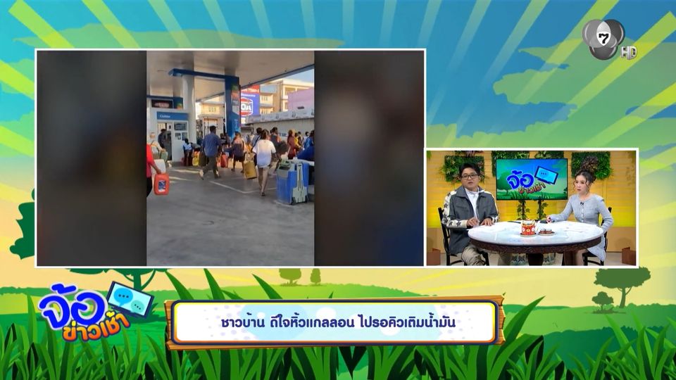 จ้อข่าวเช้า - ชาวบ้าน ดีใจหิ้วแกลลอน ไปรอคิวเติมน้ำมัน