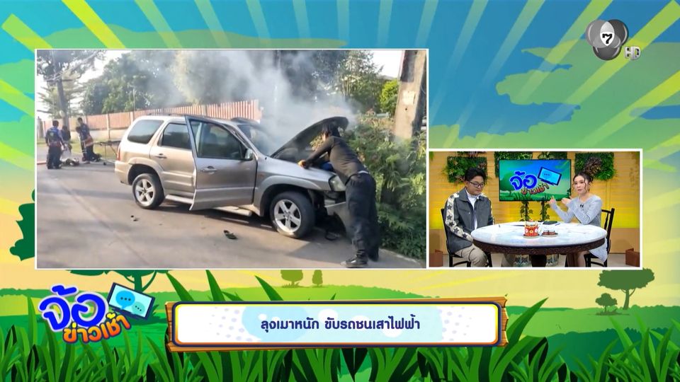 จ้อข่าวเช้า - ลุงเมาหนัก ขับรถชนเสาไฟฟ้า