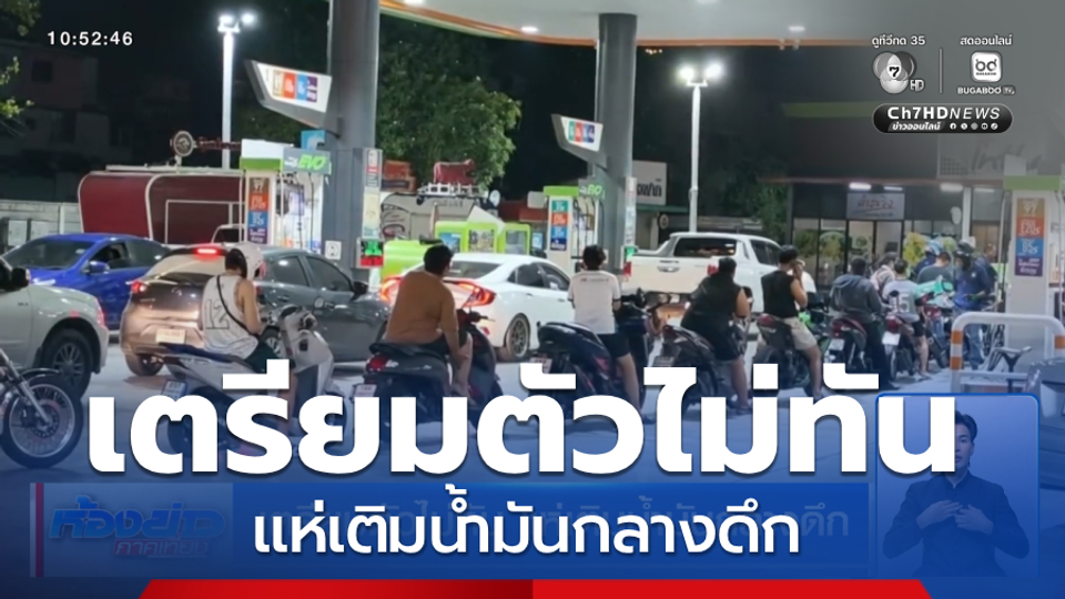 ต่อคิวล้นปั๊ม เติมน้ำมันกลางดึก จ.สมุทรปราการ