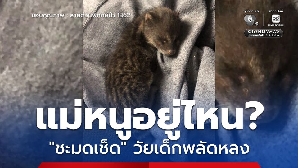 ช่วย “ชะมดเช็ด” วัยเด็ก พลัดหลงจากอกแม่ โชคดีสุขภาพแข็งแรงดี ขณะนี้อยู่ในความดูแลของสัตวแพทย์