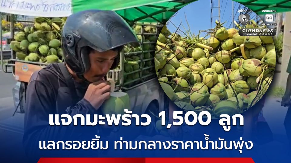 ชาวสวนบ้านแพ้ว แจกมะพร้าวน้ำหอม 1,500 ลูก แลกรอยยิ้ม บรรเทาภาระประชาชนท่ามกลางราคาน้ำมันพุ่ง