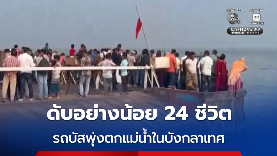 รถบัสโดยสารพุ่งตกแม่น้ำลึกเกือบ 9 เมตร ขณะกำลังพยายามขับขึ้นเรือเฟอร์รี ในประเทศบังกลาเทศ ส่งผลให้มีผู้เสียชีวิตอย่างน้อย 24 คน คาดยังมีผู้สูญหายอีกจำนวนหนึ่ง