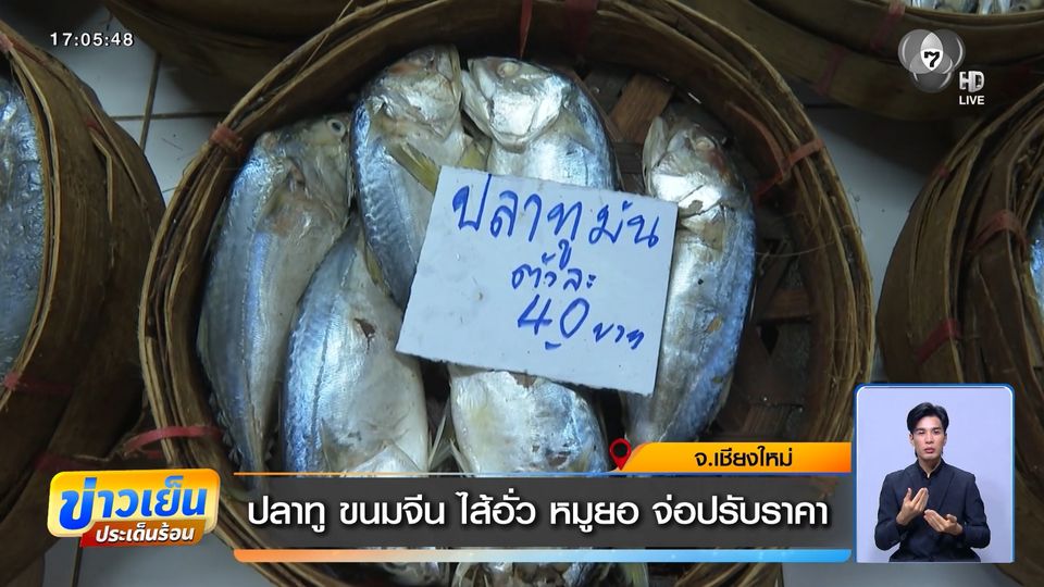 ข่าวเย็นประเด็นร้อน - ที่จังหวัดเชียงใหม่ ใครชอบกินปลาทู อาจสะเทือนหลัง แม่ค้าปลาทูในตลาดเตรียมปรับราคาขึ้น 5 บาท เพราะค่าขนส่งแพงขึ้นตามราคาน้ำมัน