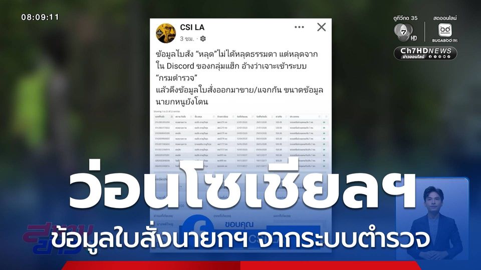 แต่หลุดจากใน Discord มาจากใน Discord ของกลุ่มแฮกเกอร์ อ้างว่าได้เจาะเข้าระบบของสำนักงานตำรวจแห่งชาติ แล้วดึงข้อมูลใบสั่ง ออกมาขาย และแจกกัน ขนาดข้อมูลของ "นายกหนู" ก็ยังโดน