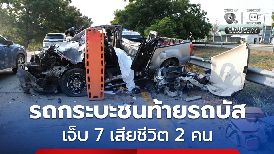 รถกระบะขับชนท้ายรถบัสรับผู้โดยสาร เจ็บ 7 คน เสียชีวิต 2 คน