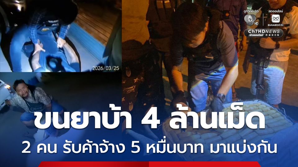 รวบ 2 ผู้ต้องหา รับจ้างขนยาบ้า 4 ล้านเม็ด จากชาวลาว ได้ค่าจ้าง 5 หมื่นบาท มาแบ่งกัน ได้เงินล่วงหน้ามาแล้ว 1 หมื่นบาท อ้างทำงานก่อสร้าง รายได้ไม่พอกับรายจ่าย เพิ่งทำครั้งแรก แต่ประวัติโชกโชน