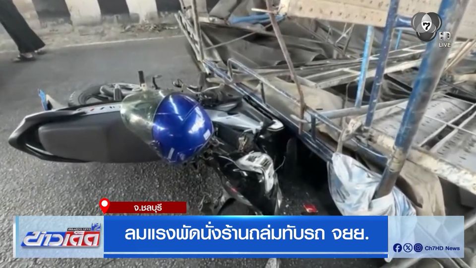 ข่าวเด็ด 7 สี - ใครจะไปนึก ขี่รถจักรยานยนต์มาบนถนนอยู่ดี ๆ จู่ ๆ มาเจอนั่งร้านถล่มลงมา