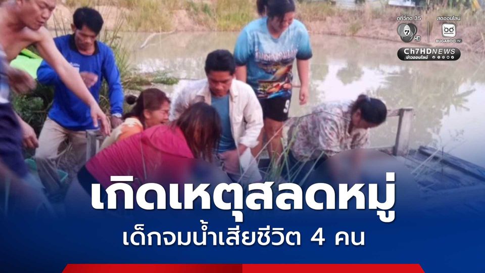 ละสายตาครู่เดียว เกิดเหตุสลดหมู่ ผู้ปกครองไปช่วยกันดับไฟไหม้ทุ่งนา เด็ก 4 คน อายุ 7-11 ขวบ ลงสระเล่นน้ำ จมน้ำเสียชีวิตทั้งหมด 4 คน