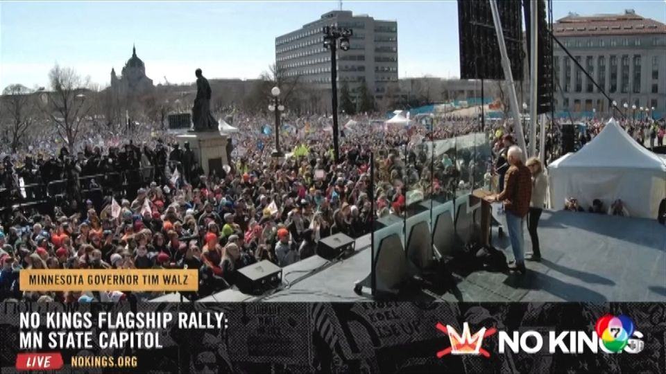 วานนี้ มีการนัดรวมตัวประท้วงประธานาธิบดีโดนัลด์ ทรัมป์ แห่งสหรัฐฯ และปฏิบัติการโจมตีอิหร่าน ใน 3,200 จุดใน 50 รัฐทั่วประเทศสหรัฐฯ ซึ่งคาดว่าจะมีผู้เข้าร่วมประท้วงรวมกันกว่า 9 ล้านคน ที่เมืองลอสแอนเจลิสฝูงชนจำนวนมหาศาล เดินขบวนไปตามท้องถนนจนมองดูราวกับมด และตะโกนต่อต้านการใช้อำนาจเกินขอบเขตของ "ทรัมป์"
