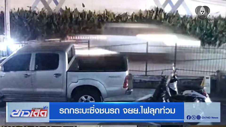 ข่าวเด็ดภาคดึก - รถกระบะตีนผีซิ่งชนรถจักรยานยนต์จนไฟลุกท่วม ทำให้เยาวชนชาย 2 คน คนขี่ อายุ 15 ปี กับ คนซ้อน อายุ 14 ปี บาดเจ็บสาหัส ส่วนคนขบรถกระบะเผ่นหนี