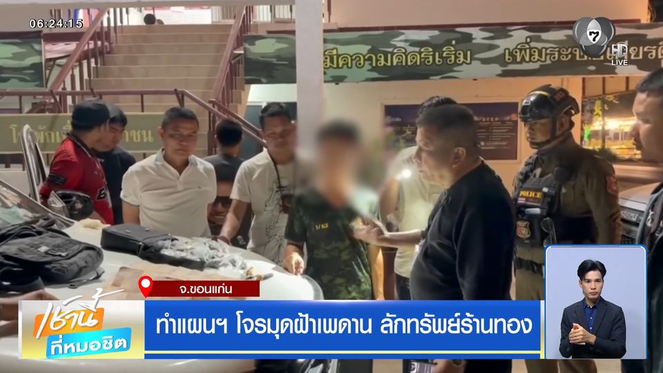 เช้านี้ที่หมอชิต - ตำรวจขอนแก่น ตามจับโจรมุดฝ้าเพดาน ลักทรัพย์ภายในร้านทองได้แล้ว อ้างว่ามีภาระต้องเลี้ยงแม่และน้อง หาทางออกไม่ได้เลยต้องก่อเหตุ