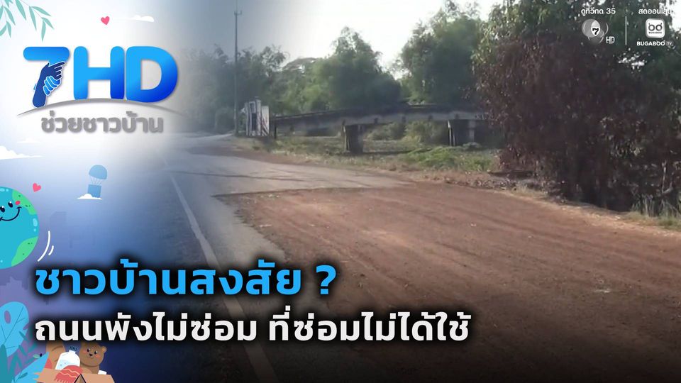 7 สีช่วยชาวบ้าน - ปัญหานี้ชาวบ้านตำบลหมอนทอง ร้องเรียนถนนพังเสียหาย บางจุดมีรอยแตกแยก