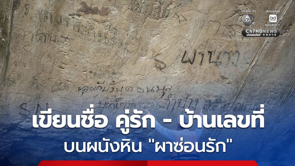 ทำไปทำไม ? นักท่องเที่ยวมือบอน ขีดเขียนชื่อ คู่รัก -บ้านเลขที่ บนผนังหิน "ผาซ่อนรัก" แหล่งธรณีวิทยาระดับโลก
