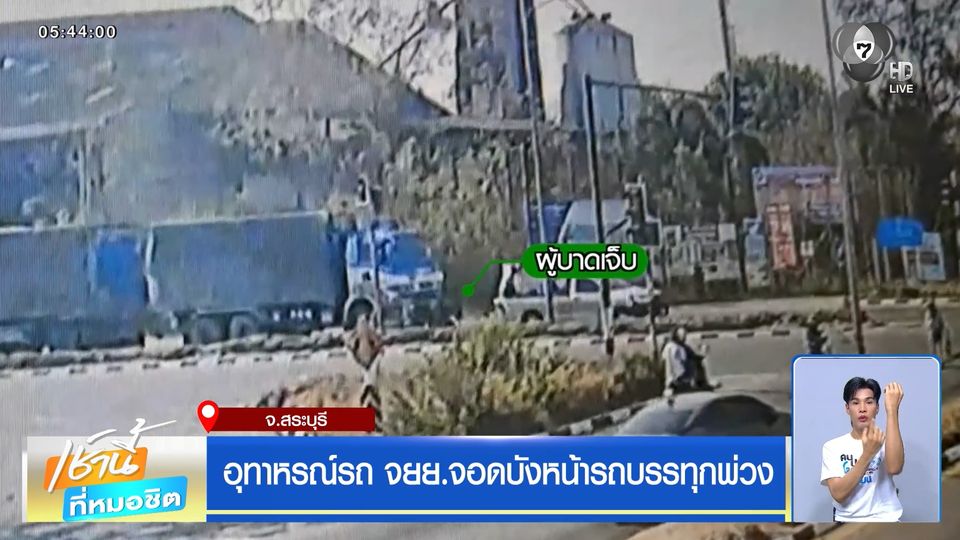 กล้องวงจรปิดบันทึกภาพนาทีเกิดอุบัติเหตุ รถบรรทุกพ่วง (สีน้ำเงิน-ขาว) จอดติดไฟแดง บริเวณแยกบางโขมด อำเภอบ้านหมอ จังหวัดสระบุรี โดยจังหวะได้สัญญาณไฟเขียว รถบรรทุกพ่วงได้ขับออกตัวเคลื่อนไปด้านหน้าตามปกติ ก่อนไปชนรถจักรยานยนต์คันหนึ่งที่อยู่ด้านหน้า