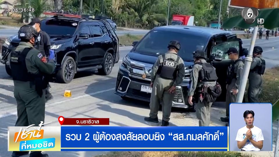 เช้านี้ที่หมอชิต - ตามคดีคนร้ายขับรถไล่กระหน่ำยิง "สส.กมลศักดิ์" พรรคประชาชาติ เขต 5 จังหวัดนราธิวาส ล่าสุดตำรวจตามจับกุมผู้ต้องสงสัยได้แล้ว 2 คน จากทั้งหมด 4 คน