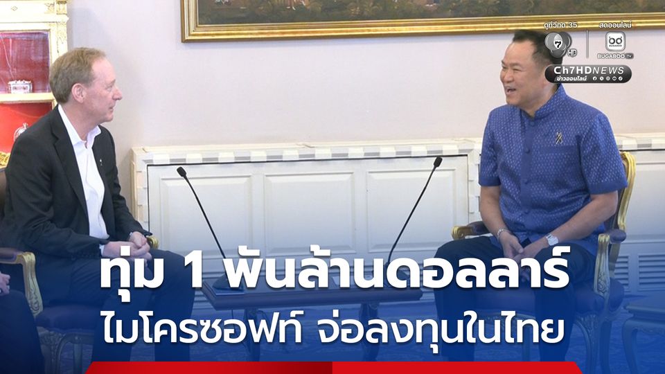 ไมโครซอฟท์ เข้าพบ นายกฯ เตรียมประกาศแผนลงทุนในไทย ทุ่ม 1 พันล้านดอลลาร์ หนุนพัฒนาทักษะแรงงาน ดันให้เป็นศูนย์กลาง AI