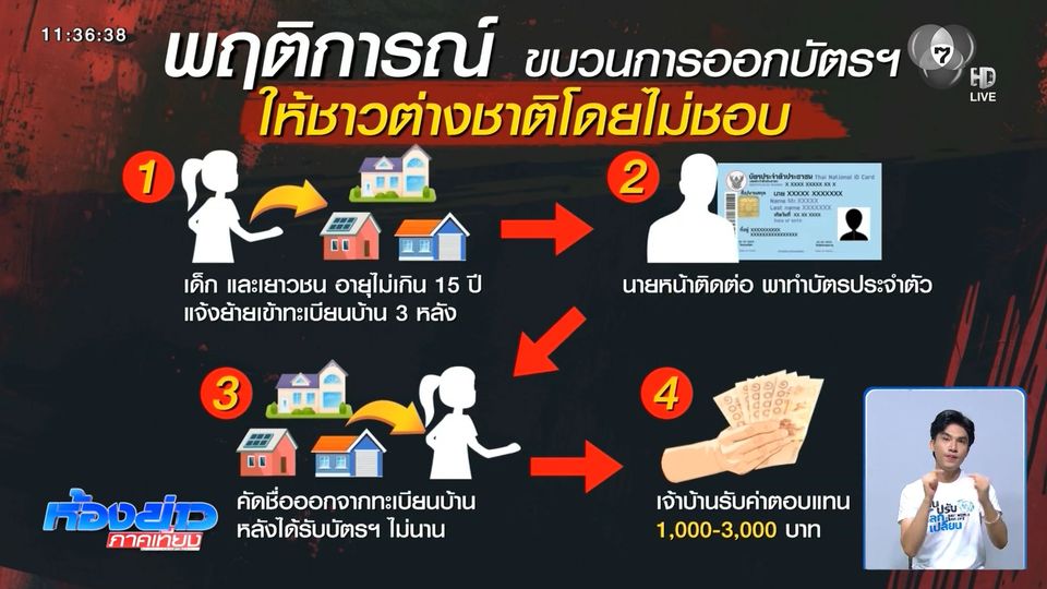 แผนประทุษกรรมเริ่มจากจะมีการแจ้งขอย้ายทะเบียนเด็ก หรือเยาวชนที่อายุไม่เกิน 15 ปี ที่เกิดในช่วงเดือนกรกฎาคมถึงพฤศจิกายนปีที่แล้ว เข้าไปในทะเบียนบ้าน 3 หลัง นับรวมแล้วมีประมาณกว่า 100 รายชื่อ เสร็จแล้วก็จะไปดำเนินการขอทำบัตรประจำตัวฯ ให้กับแต่ละคน และพอได้บัตรฯ แล้ว ก็จะแจ้งเอาชื่อคนเหล่านี้ออกภายในไม่กี่วัน โดยที่เจ้าของบ้านก็จะได้รับผลตอบแทนเป็นเงินประมาณ 1,000-3,000 บาทต่อคนต่างด้าว 1 คน