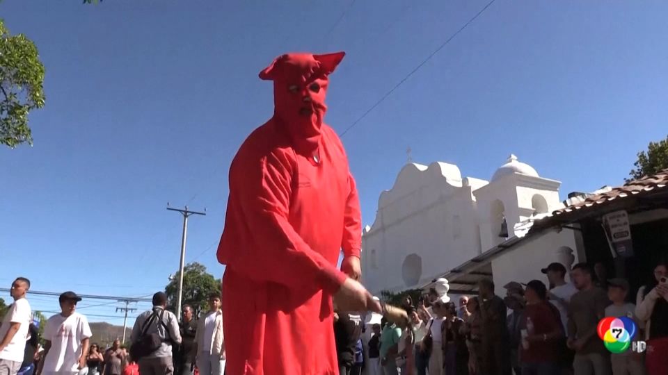 ชายแต่งกายด้วยชุดปีศาจ ออกมาไล่เฆี่ยนประชาชนตามท้องถนนในเอกวาดอร์ ต้อนรับเทศกาลวันอีสเตอร์