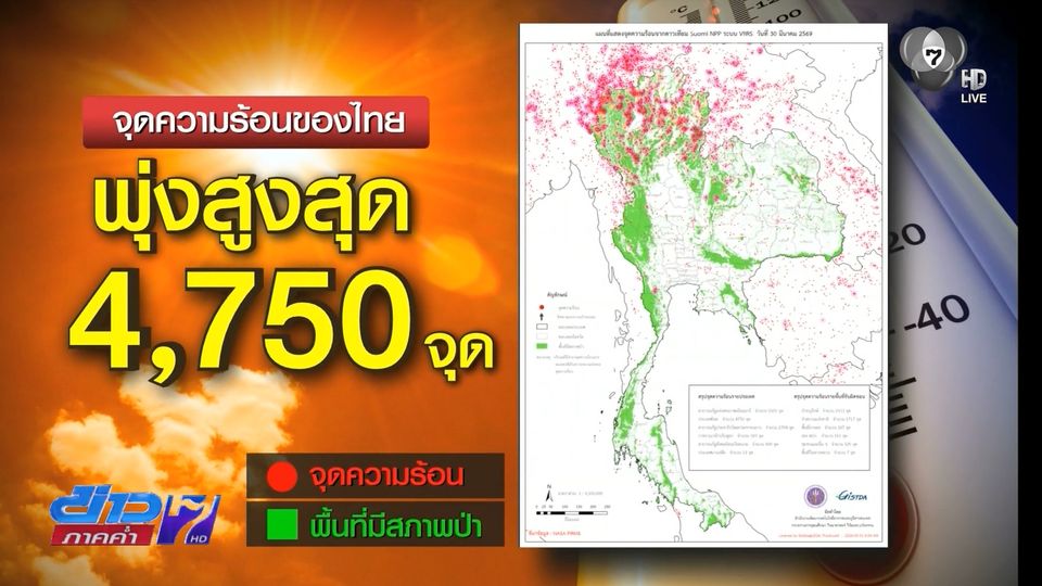 ข่าวภาคค่ำ - จุดความร้อนในไทยทำนิวไฮ สูงสุดเท่าที่เคยมีมา โดยเฉพาะพื้นที่ภาคเหนือ เป็นจุดสีแดง ๆ กว่า 4,700 จุด