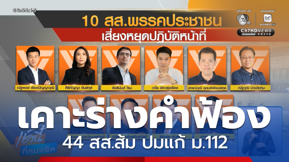 เช้านี้ที่หมอชิต - ป.ป.ช. มีมติเห็นชอบร่างคำฟ้อง 44 สส.พรรคก้าวไกล ปมร่วมแก้ไขมาตรา 112 ในจำนวนนี้มี 10 คน ที่เป็น สส.พรรคประชาชน อาจถูกสั่งให้หยุดปฏิบัติหน้าที่