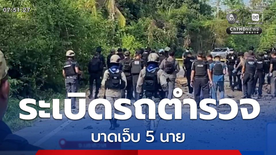 สนามข่าว 7 สี - เหตุความไม่สงบจังหวัดชายแดนภาคใต้ เกิดขึ้นแทบจะรายวัน ล่าสุดคนร้ายลอบวางระเบิดแสวงเครื่องบรรจุถังก๊าซบึ้มรถตำรวจ สภ.ระแงะ บาดเจ็บ 5 นาย