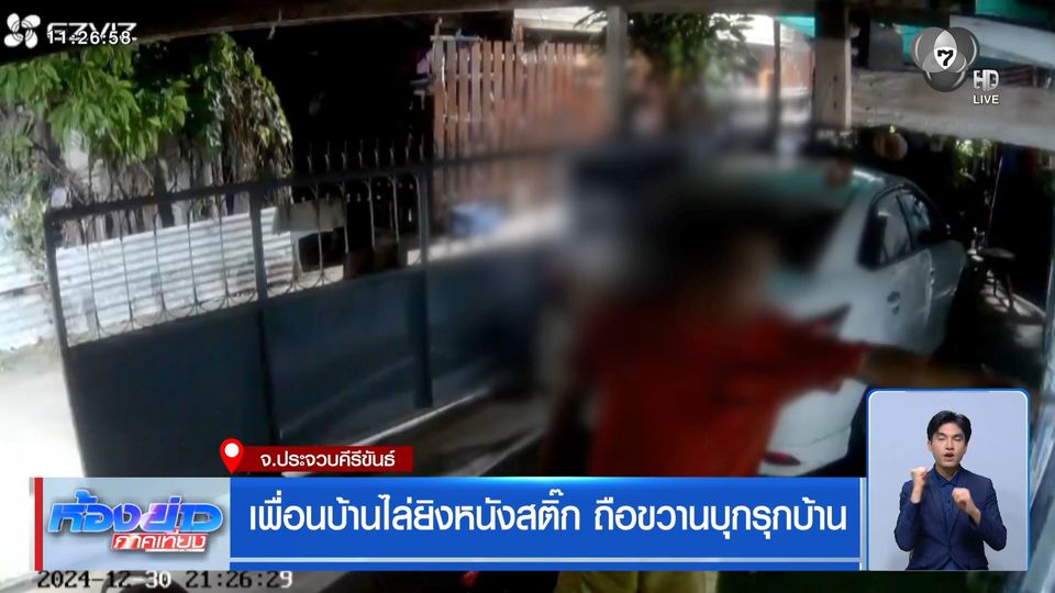 ห้องข่าวภาคเที่ยง - หนุ่มดมกาวจนเพี้ยน ไล่ถีบประตูเพื่อนบ้าน ยิงหนังสติ๊ก ถือขวานบุกรุกก่อกวนหลายสิบครั้ง ทำเพื่อนบ้านหวาดผวาหวั่นก่อเหตุรุนแรง วอนหน่วยงานที่เกี่ยวข้องช่วยเหลือด้านความปลอดภัย