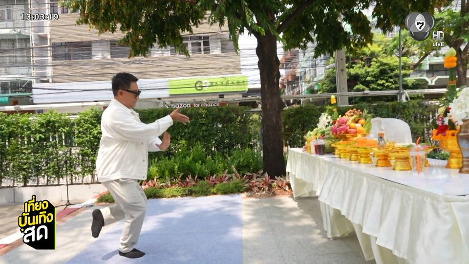 เที่ยงบันเทิงสด - หลังจากเสร็จพิธีสรงน้ำพระ คุณพัฒนพงศ์ หนูพันธ์ กรรมการผู้จัดการช่อง 7HD พร้อมด้วยคณะผู้บริหาร ก็ได้มาร่วมพิธีบวงสรวงพระพิฆเนศของรายการ เปิดจอจ้อข่าว กันต่อ