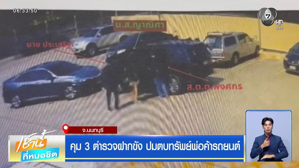 คลิปขณะพ่อค้ารถยนต์มือสอง พร้อมแม่และน้องสาว ถูกตำรวจในพื้นที่นนทบุรี 5-6 คน เข้าแย่งเงินสด 350,000 บาท ที่เตรียมมาซื้อรถยนต์คันหนึ่ง จนเกิดการชุลมุน เงินตกกระจายเต็มพื้น พ่อค้ารถยนต์แย่งเงินคืนมาได้ แต่ไม่ครบ มีเงินหายไป 52,000 บาท เหตุเกิดบริเวณลานจอดรถของร้านสะดวกซื้อแห่งหนึ่งในอำเภอเมืองนนทบุรี เมื่อวันที่ 22 มีนาคมที่ผ่านมา