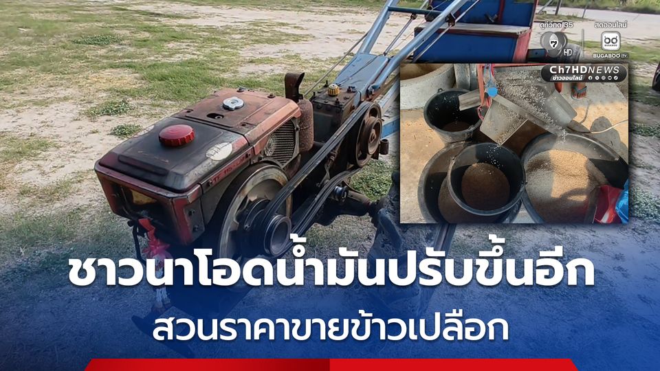 ทำนาแทบไม่รอด เกษตรกรโอดซ้ำ หลังน้ำมันปรับขึ้นอีกรอบ ต้นทุนพุ่งเกือบ 6,000 ต่อไร่ สวนราคาขายข้าวเปลือก ได้แค่ตันละ 6,000 บาท