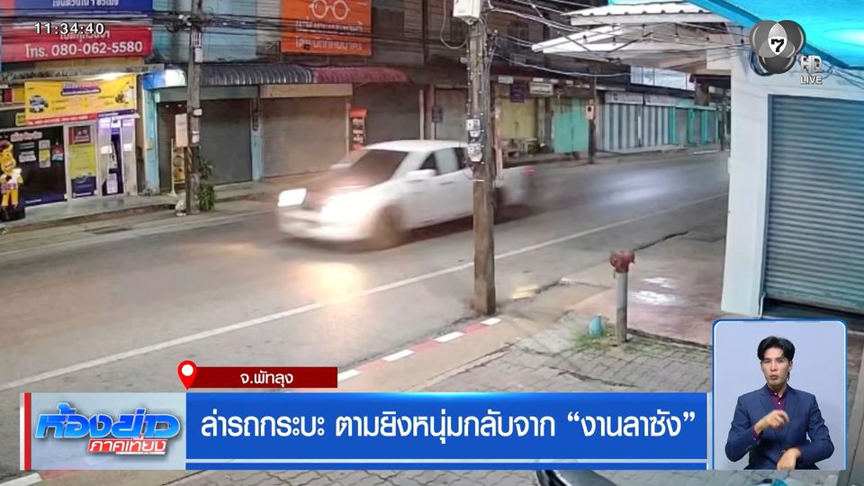 ห้องข่าวภาคเที่ยง - หนุ่มใหญ่กลับจากงานลาซัง ประจำปีของชาวควนขนุน จังหวัดพัทลุง ถูกรถกระบะตามไล่ยิง ถูกขาได้รับบาดเจ็บ