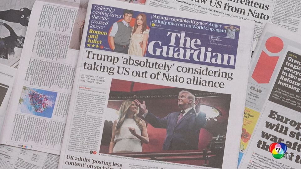 วานนี้ (1 เม.ย.) หนังสือพิมพ์อังกฤษส่วนใหญ่พร้อมใจกันพาดหัวข่าวเรื่องประธานาธิบดีโดนัลด์ ทรัมป์ แห่งสหรัฐฯ ขู่ว่า สหรัฐฯ อาจถอนตัวออกจากการเป็นสมาชิกองค์การสนธิสัญญาแอตแลนติกเหนือ หรือ นาโต (NATO) จากความไม่พอใจที่พันธมิตรนาโตในยุโรปไม่เสนอความช่วยเหลือในการเปิดช่องแคบฮอร์มุซ รวมทั้งไม่ให้ความร่วมมือในการใช้ฐานทัพในปฏิบัติการโจมตีอิหร่าน ในขณะที่มีความกังวลว่ารัสเซียอาจขยายอำนาจมากขึ้นนอกเหนือจากการรุกรานยูเครน