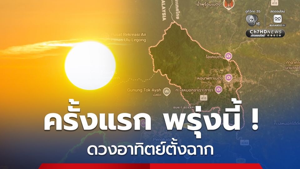 ครั้งแรกของปี 2569 ! ดวงอาทิตย์ตั้งฉาก เริ่มวันพรุ่งนี้ 4 เม.ย. 69 เวลา 12.19 น. ที่ใต้สุด อ.เบตง จ.ยะลา และจะไล่ขึ้นเหนือไปสิ้นสุดที่ อ.แม่สาย จ.เชียงราย วันที่ 22 พ.ค.69 อย่างไรก็ตามเหตุการณ์นี้จะเกิดขึ้นปีละ 2 ครั้ง ครั้งแรกในช่วง เม.ย.-พ.ค. และครั้งที่สองช่วง ก.ค.-ก.ย.