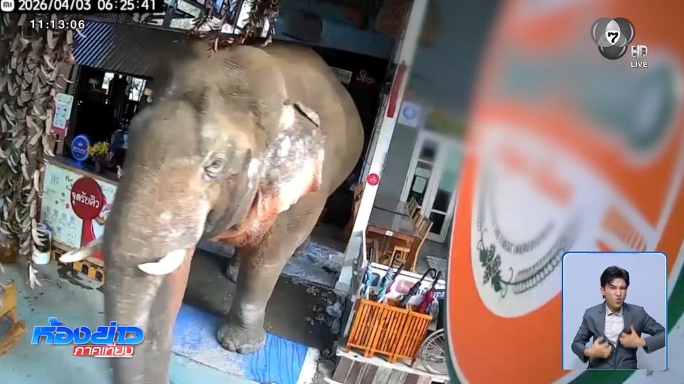 ลูกค้าขาประจำตัวนี้ มาตั้งแต่เช้าตรู่ โดยภาพจากกล้องวงจรปิด จับภาพ "พลายเบี่ยงเล็ก" ช้างป่าเขาใหญ่จอมดื้อ บุกร้านอาหารอีสานชื่อดัง สาขาเขาใหญ่ ร้านนี้เขาได้รางวัลมิชลิน ริมถนนธนะรัชต์ ตำบลหมูสี อำเภอปากช่อง จังหวัดนครราชสีมา