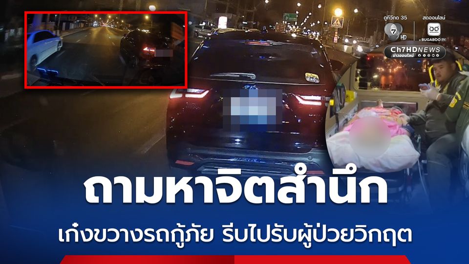 ถามหาจิตสำนึก แข่งกับเวลาเพื่อทุกวินาทีชีวิต รถกู้ภัยถูกรถเก๋งขวางทางไม่หลบให้ ต้องหาจังหวะแซงซ้ายเอง ทั้งที่ด้านหน้าไม่มีรถขวาง เพื่อไปรับชายชราวัย 82 ปี ป่วยวิกฤต ส่งโรงพยาบาล