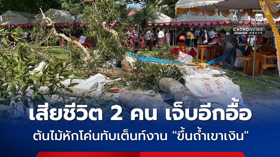 สลด ต้นไม้ใหญ่บนหน้าผาหักโค่นทับเต็นท์งานประจำปีสวนสมเด็จฯ หลังสวน สังเวย 2 ชีวิต เจ็บสาหัสอีกหลายคน