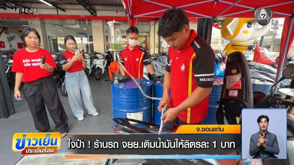ใจป๋า ! ร้านรถ จยย.เติมน้ำมันให้ลิตรละ 1 บาท จ.ขอนแก่น