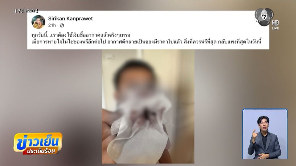 ส่วนที่เชียงราย แม่ ๆ ออกมาโพสต์ อดห่วงลูกไม่ได้ เห็นลูกชายมีเลือดกำเดาไหลแทบทุกวันทั้งที่อยู่กับบ้านเฉย ๆ ไม่ได้ออกไปไหน จนมีคำถามว่า "ทุกวันนี้ เราต้องใช้เงินซื้ออากาศแล้วจริง ๆ เหรอ ทำไมการหายใจถึงไม่ใช่ของฟรีอีกต่อไป อากาศดีกลายเป็นของมีราคาไปแล้ว สิ่งที่ควรฟรีที่สุด กลับแพงที่สุดในวันนี้"
