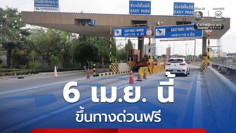 วันนี้ (5 เม.ย. 69) การทางพิเศษแห่งประเทศไทย (กทพ.) กระทรวงคมนาคม ยกเว้นค่าผ่านทางพิเศษรวม 3 สายทาง ดังนี้ ทางพิเศษเฉลิมมหานคร (ดินแดง-บางนา-ดาวคะนอง) จำนวน 21 ด่าน ทางพิเศษศรีรัช (แจ้งวัฒนะ- บางโคล่-ศรีนครินทร์) จำนวน 32 ด่าน และทางพิเศษอุดรรัถยา (บางปะอิน-ปากเกร็ด) จำนวน 10 ด่าน เนื่องในวันจักรี (6 เม.ย. 69) ตั้งแต่เวลา 00.01 น. ถึง 24.00 น. ซึ่งเป็นวันหยุดราชการประจำปี ตามประกาศสำนักนายกรัฐมนตรี