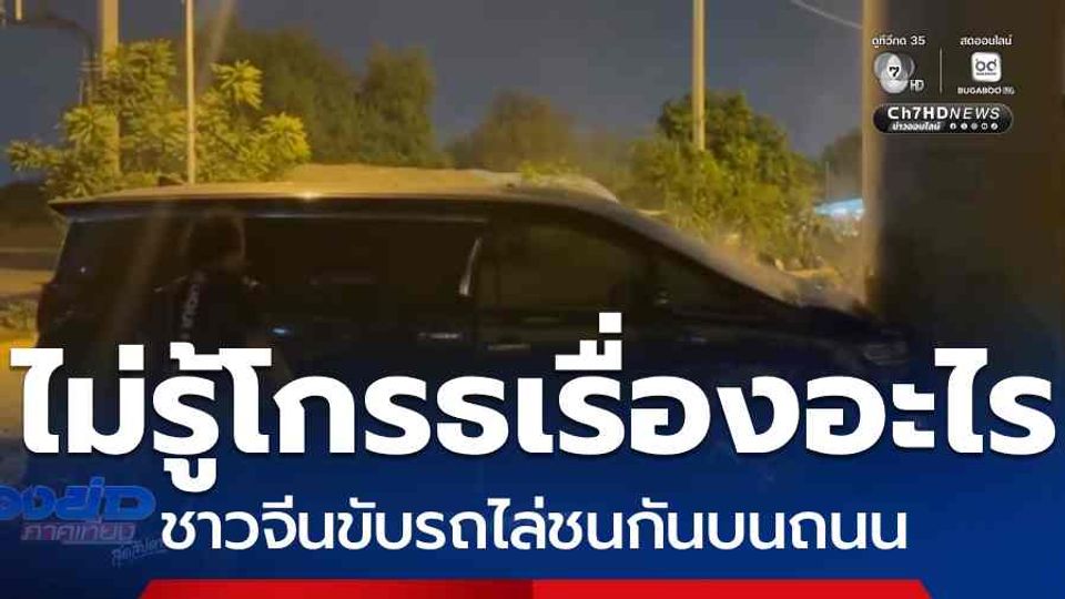 ห้องข่าวภาคเที่ยง สุดสัปดาห์ - หนุ่มจีนไม่รู้โมโหเรื่องอะไรกันมา ขับรถตู้ไล่กันบนถนน สุดท้ายไปจบที่ข้างทาง คันหนึ่งชนตอม่อ อีกคันขึ้นฟุตพาท