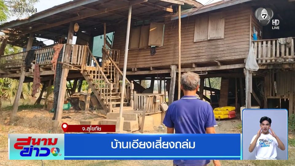บ้านหลังนี้เป็นของ คุณลุงพิพัฒน์ อายุ 57 ปี พื้นที่หมู่ 7 ตำบลยางซ้าย อำเภอเมืองสุโขทัย สภาพตัวบ้านเอียงทั้งหลังจากพายุ หลังคา และผนังบ้านบางส่วนก็หายไป