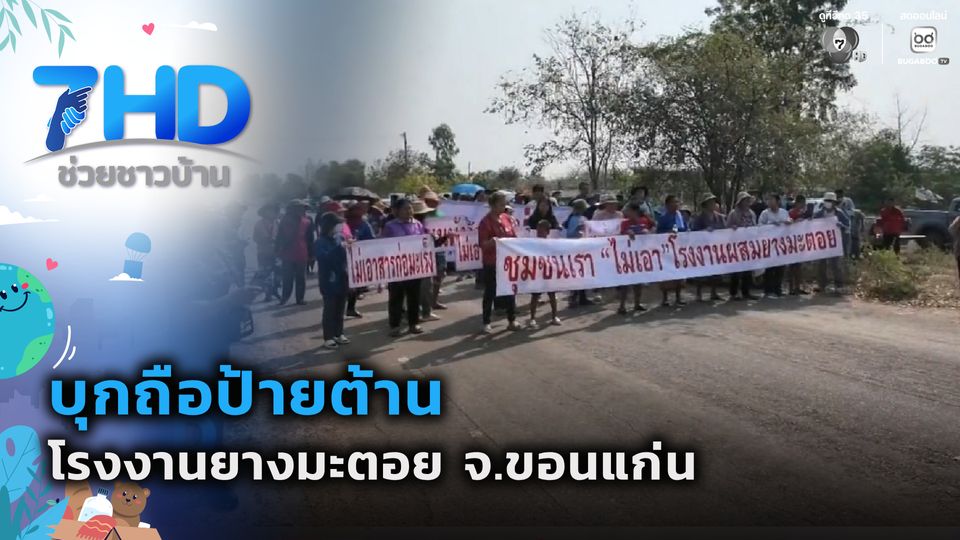 7 สีช่วยชาวบ้าน - ชาวบ้านแก่นเท่า จังหวัดขอนแก่น บุกถือป้ายค้านโรงงานยางมะตอย หวั่นฝุ่นพิษ สารก่อมะเร็ง ย้ำว่าไม่เคยรับรู้ข้อมูลอย่างทั่วถึง