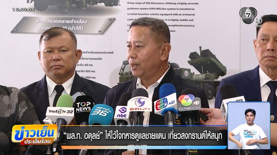 ข่าวเย็นประเด็นร้อน - รัฐมนตรีว่าการกระทรวงกลาโหม ขอให้เชื่อใจกองทัพในการดูแลอธิปไตยชายแดนไทย-กัมพูชา ยืนยัน ไม่มีการสู้รบกับกัมพูชารอบที่ 3 ย้ำอย่างไรก็มีแผนรอบรับ