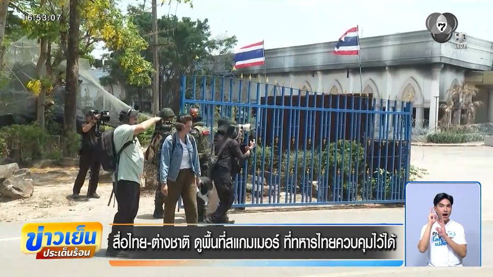 ข่าวเย็นประเด็นร้อน - ศูนย์ข่าวสารสถานการณ์ไทย-กัมพูชา พาสื่อไทยและต่างชาติ ลงพื้นที่เห็นกับตาว่าสิ่งที่กัมพูชาทำมาก่อนหน้านี้เป็นอย่างไร โดยเฉพาะการตั้งเป็นศูนย์สแกมเมอร์ที่ บริเวณช่องจอม กาบเชิง จังหวัดสุรินทร์
