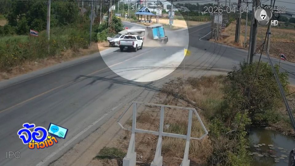 จ้อข่าวเช้า - รถกระบะข้ามแยกไม่ชะลอ ชนเจ็บ 3 คน