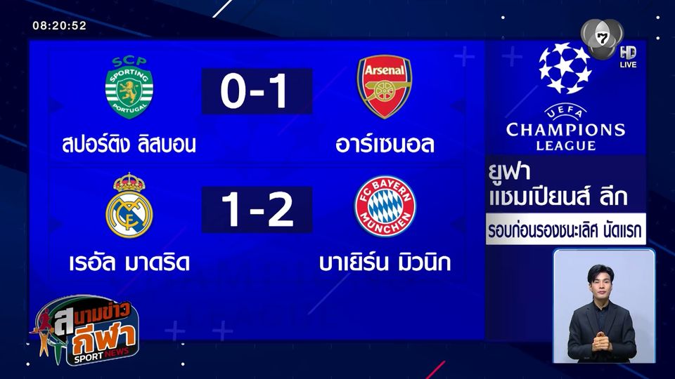 สนามข่าวกีฬา - ผลฟุตบอล ยูฟา แชมเปียนส์ ลีก รอบก่อนรองชนะเลิศ นัดแรก