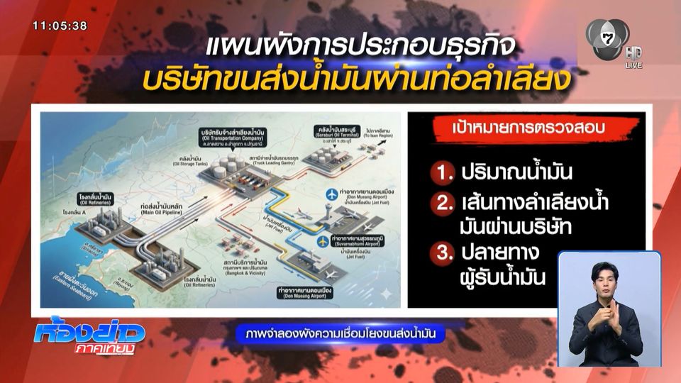 จุดที่มีการตรวจสอบล่าสุดเช้าวันนี้ เป็น "บริษัทรับจ้างลำเลียงน้ำมันผ่านทางท่อ" ย่านตำบลลาดสวาย อำเภอลำลูกกา จังหวัดปทุมธานี หลังจากมีการตรวจสอบแล้วพบว่า บริษัทดังกล่าวจะรับน้ำมันจากพื้นที่จังหวัดระยอง และชลบุรี ส่งผ่านตามท่อมาที่บริษัทแห่งนี้ ก่อนกระจายส่งต่อไปยังลูกค้า ซึ่งเป็นบริษัทน้ำมัน