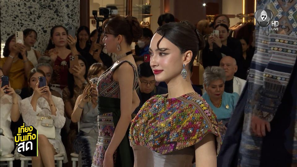 เที่ยงบันเทิงสด - ตามไปดูแฟชั่นโชว์ผ้าไทย ที่เหล่าชาวช่อง 7HD เค้าไปเป็นนายแบบ นางแบบกัน ทั้ง แคท ซอนญ่า, แอนน่า กลึคส์ และน้อง ๆ TSM Management เอล่า นีรชา, ซัน ก้องภพ, ชาย สมชาย ในชุดผ้าไทยที่ตัดเย็บโดยห้องเสื้อ ฟินาเล่ เวดดิ้ง สตูดิโอ ในงาน "A SENSE OF THAI 2026 : ROOTED IN HERITAGE" ที่จัดขึ้นภายใต้แนวคิด "ผ้าไทยมรดกอันทรงคุณค่า" ถ่ายทอดมรดกผ้าไทยสู่มิติร่วมสมัย ต้อนรับปีใหม่ไทย ในช่วงเทศกาลสงกรานต์นี้ แคท มาในลุคผ้าไทยสีขาว เดินปิดท้ายฟินาเล่ได้อย่างสวยงาม
