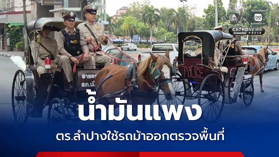 ตำรวจเมืองลำปาง ปรับแผนหลังน้ำมันแพง หันมาใช้รถม้าออกตรวจในพื้นที่ นอกจากประหยัดแล้วยังสร้างสีสันช่วงเทศกาลสงกรานต์ด้วย